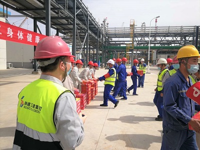 近日,陜建集團黨委常委、董事,延長化建黨委書記高建成,延長化建董事、黨委副書記符杰平,延長化建總經(jīng)理康宇麟,延長化建總法律顧問鄭發(fā)龍一行,來到北京石油化工工程有限公司總承包項目榆能化一期填平補齊工程現(xiàn)場,進行了暑期慰問和視察。