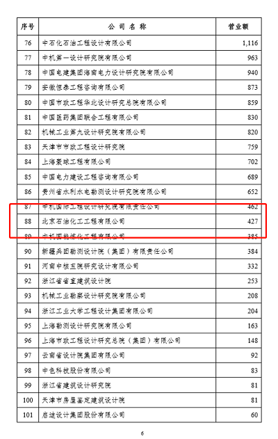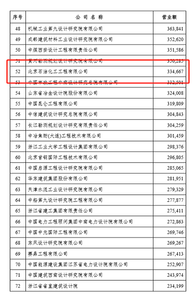 近日,中國(guó)勘察設(shè)計(jì)協(xié)會(huì)發(fā)布了《關(guān)于公布勘察設(shè)計(jì)企業(yè)工程項(xiàng)目管理和工程總承包營(yíng)業(yè)額二0二0年排名的通知》,北京石油化工工程有限公司獲工程總承包營(yíng)業(yè)額排名第52位、工程項(xiàng)目管理排名第88位。
