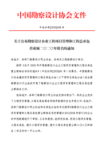 公司躋身勘察設(shè)計(jì)行業(yè)項(xiàng)目管理和工程總承包百名行列程