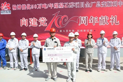 6月30日,由公司EPC總承包的榆神能化50萬噸/年煤基乙醇項(xiàng)目全廠總變中交暨向建黨100周年獻(xiàn)禮慶?;顒?dòng)在總變現(xiàn)場(chǎng)舉行。