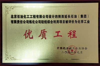 近日,由北京石油化工工程有限公司設計的延長石油集團煉化公司輕烴綜合利用項目喜獲中國化工施工企業(yè)協(xié)會化學工業(yè)優(yōu)質(zhì)工程獎。