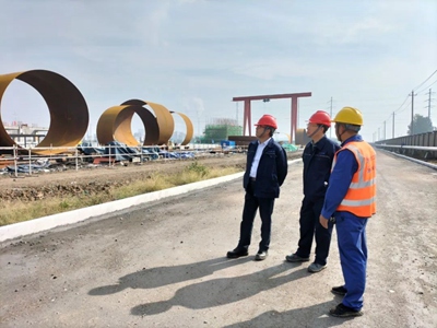 曹堅(jiān)先后來到碳鑫乙醇項(xiàng)目建設(shè)現(xiàn)場及陜西化建設(shè)備制造公司的超限塔器現(xiàn)場設(shè)備制造廠進(jìn)行了視察,重點(diǎn)檢查了工程進(jìn)度、安全生產(chǎn)、技術(shù)管控、環(huán)境保護(hù)、疫情防控等情況,對(duì)本項(xiàng)目目前的"穩(wěn)增長、抗疫情、保安全"的工作表示肯定。