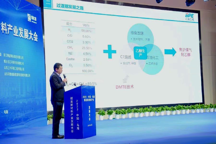 北油工程副總經(jīng)理劉戈作為嘉賓以“從傳統(tǒng)焦化邁向新能源”為主題展開演講。目前煤化工產(chǎn)業(yè)的整體發(fā)展主要集中在甲醇、乙二醇等傳統(tǒng)領(lǐng)域,有發(fā)展煤基乙醇的潛在優(yōu)勢。劉戈提出,煤化工高質(zhì)量發(fā)展之路,要以焦?fàn)t尾氣制乙醇為媒介生產(chǎn)乙烯、醋酸乙烯、EVA、走向光伏領(lǐng)域,環(huán)氧乙烷、碳酸酯電池電解液,進入電池新能源行業(yè)。