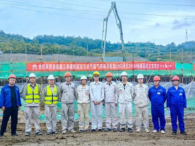 此次澆筑工程,兩臺儲罐基礎(chǔ)混凝土總量超過1萬立方米。為確保節(jié)點任務(wù)高質(zhì)量完成,項目部統(tǒng)籌規(guī)劃,每日召開問題對接會,與業(yè)主及各參建單位協(xié)調(diào)溝通,緊密配合,掃除各項困難??茖W(xué)管理,規(guī)范施工,狠抓現(xiàn)場安全文明施工,嚴(yán)格執(zhí)行質(zhì)量管理規(guī)定,確保了施工的質(zhì)量、工期和安全。