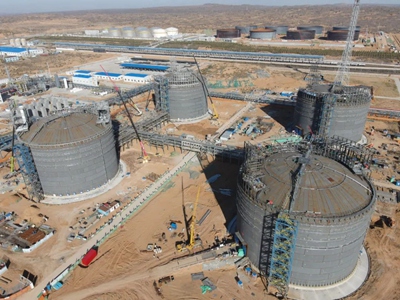 靖邊LNG項(xiàng)目?jī)?chǔ)罐開(kāi)始充水試驗(yàn)