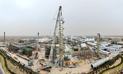 里程碑!凱越煤化乙醇項(xiàng)目核心塔器完成“空中合龍”