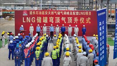 5月7日,由北京石油化工工程有限公司(簡(jiǎn)稱“北油工程”)總承包的延長(zhǎng)石油延安天然氣儲(chǔ)氣調(diào)峰及配套LNG項(xiàng)目取得重大進(jìn)展——兩座5萬(wàn)立方米液化天然氣(LNG)儲(chǔ)罐順利完成“雙罐同步穹頂氣頂升”關(guān)鍵工序。標(biāo)志著項(xiàng)目主體結(jié)構(gòu)建設(shè)全面完成,正式轉(zhuǎn)入內(nèi)罐安裝階段,為項(xiàng)目后續(xù)投產(chǎn)運(yùn)營(yíng)奠定了堅(jiān)實(shí)基礎(chǔ)。