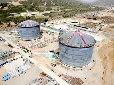 據(jù)悉,作為L(zhǎng)NG儲(chǔ)罐建設(shè)過(guò)程中最具挑戰(zhàn)性的環(huán)節(jié),“氣壓升頂”工藝難度高、風(fēng)險(xiǎn)高。本次實(shí)施氣頂升的1號(hào)、2號(hào)儲(chǔ)罐采用先進(jìn)的雙金屬全容結(jié)構(gòu),外罐內(nèi)直徑達(dá)52米,拱頂跨度51.8米。在歷時(shí)2小時(shí)18分鐘的精密操作中,成功將單體重達(dá)457.37噸的儲(chǔ)罐穹頂平穩(wěn)提升29.57米,最終實(shí)現(xiàn)與承壓環(huán)的精準(zhǔn)對(duì)接,為后續(xù)3號(hào)、4號(hào)儲(chǔ)罐穹頂升打下堅(jiān)實(shí)基礎(chǔ)。