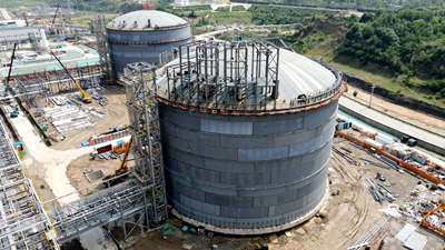 作為項目核心設(shè)施的4個LNG儲罐取得新進展,1#、2#內(nèi)罐壁已施工至第四代板組對焊接,同時2/3罐底作業(yè)面已移交保冷施工。截止目前4臺LNG儲罐累計完成焊縫延長米總量的71%,焊接一次合格率保持在99.2%以上。