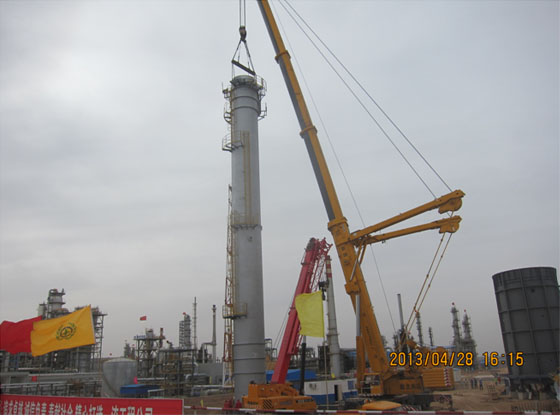 2013年4月28日早晨,隨著吊車發(fā)動(dòng)機(jī)隆隆的聲響,100項(xiàng)目(煤-油共煉試驗(yàn)示范項(xiàng)目)現(xiàn)場(chǎng)第一吊--煙囪吊裝開(kāi)始作業(yè),這標(biāo)志著100項(xiàng)目進(jìn)入了設(shè)備安裝階段。