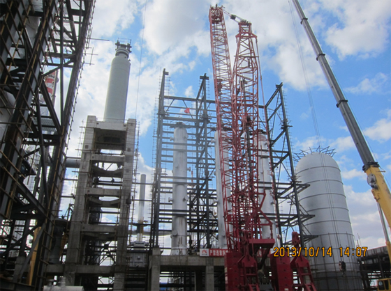 經(jīng)過(guò)近半個(gè)月時(shí)間的吊裝機(jī)械組裝及準(zhǔn)備工作,煤-油共煉試驗(yàn)示范項(xiàng)目(也稱“100項(xiàng)目”)再次掀起大型設(shè)備吊裝的高潮,2013年10月14日,100項(xiàng)目核心設(shè)備懸浮床反應(yīng)器(12-R-0102)順利完成吊裝作業(yè),至此3臺(tái)懸浮床反應(yīng)器全部完成吊裝,吊裝過(guò)程一氣呵成。