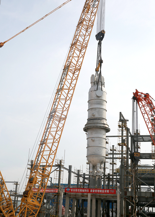 延能化項(xiàng)目甲醇裝置核心設(shè)備——合成塔順利吊裝