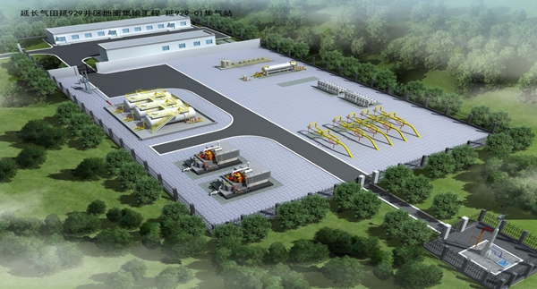 929井區(qū)地面集輸項目位于靖邊縣席麻灣-中山澗區(qū)域,區(qū)域面積約為750平方千米。設(shè)計覆蓋有井場68座,含產(chǎn)氣井口208口,新建集氣站7座,天然氣凈化廠1座,采氣及注醇管線總長各427千米,集氣管線總長約113千米。天然氣集輸總規(guī)模為200萬標方每天,天然氣凈化廠處理總規(guī)模為200萬標方每天(6億標方每年)。